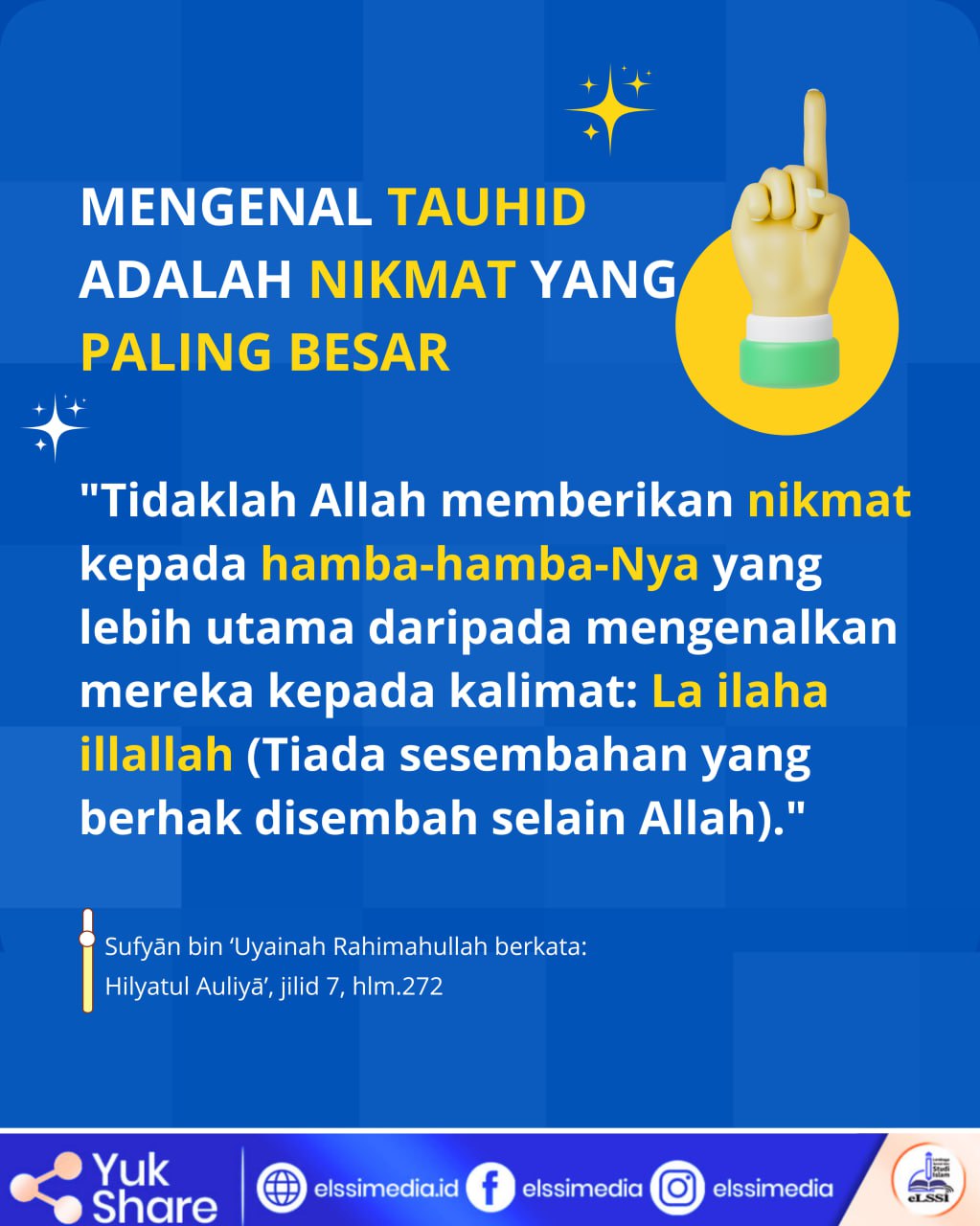 “Tidaklah Allah memberikan nikmat kepada hamba-hamba-Nya yang lebih utama daripada mengenalkan mereka kepada kalimat: Lā ilāha illallāh (Tiada sesembahan yang berhak disembah selain Allah).”